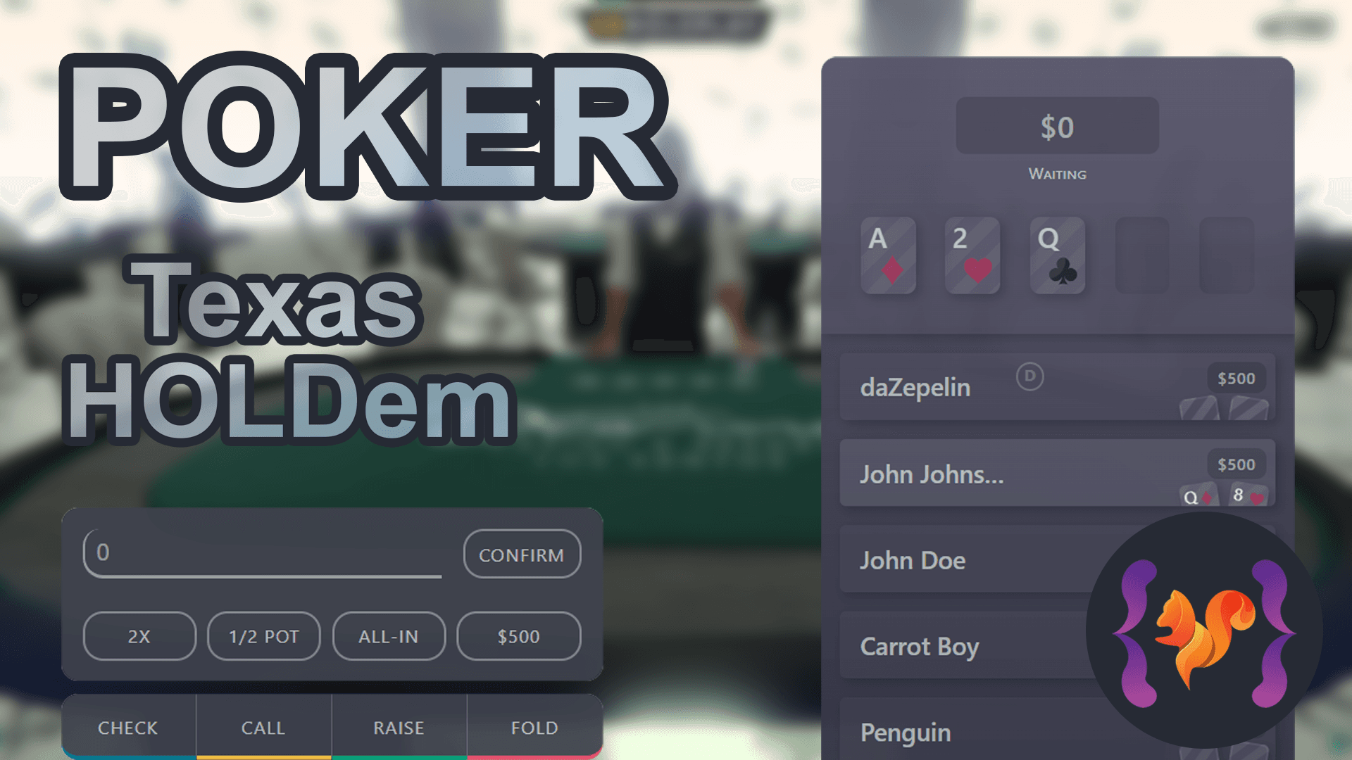 A modern five-card poker system for FiveM with configurable tables, dealer animations, and secure game logic.